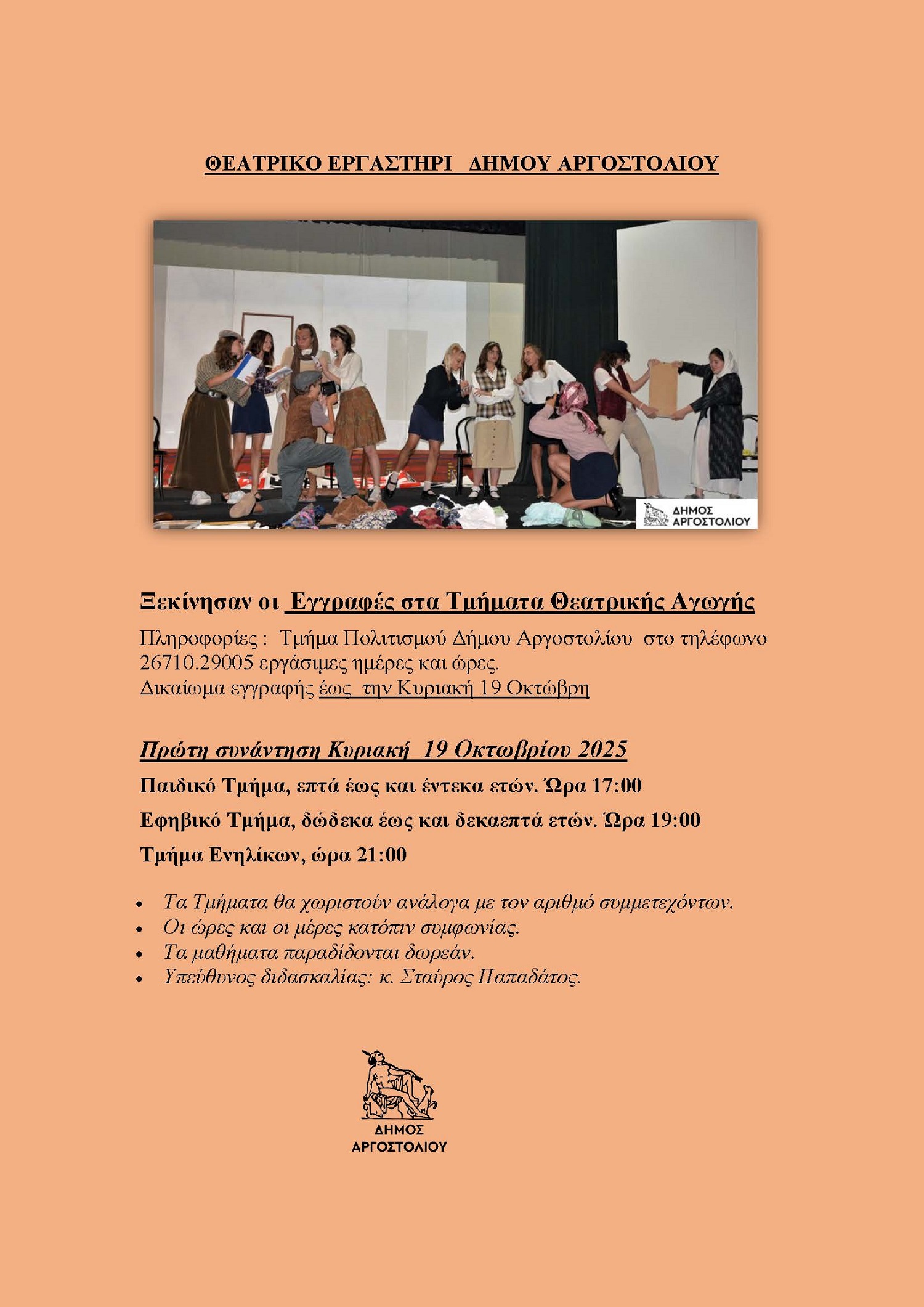 Πληροφορίες :  Τμήμα Πολιτισμού Δήμου Αργοστολίου στο τηλέφωνο  26710.29005 εργάσιμες ημέρες και ώρες.