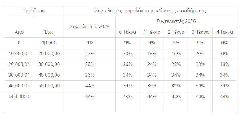 · Για τους νέους έως 25 ετών oι συντελεστές από 0 έως 20.000 ευρώ μηδενίζονται.