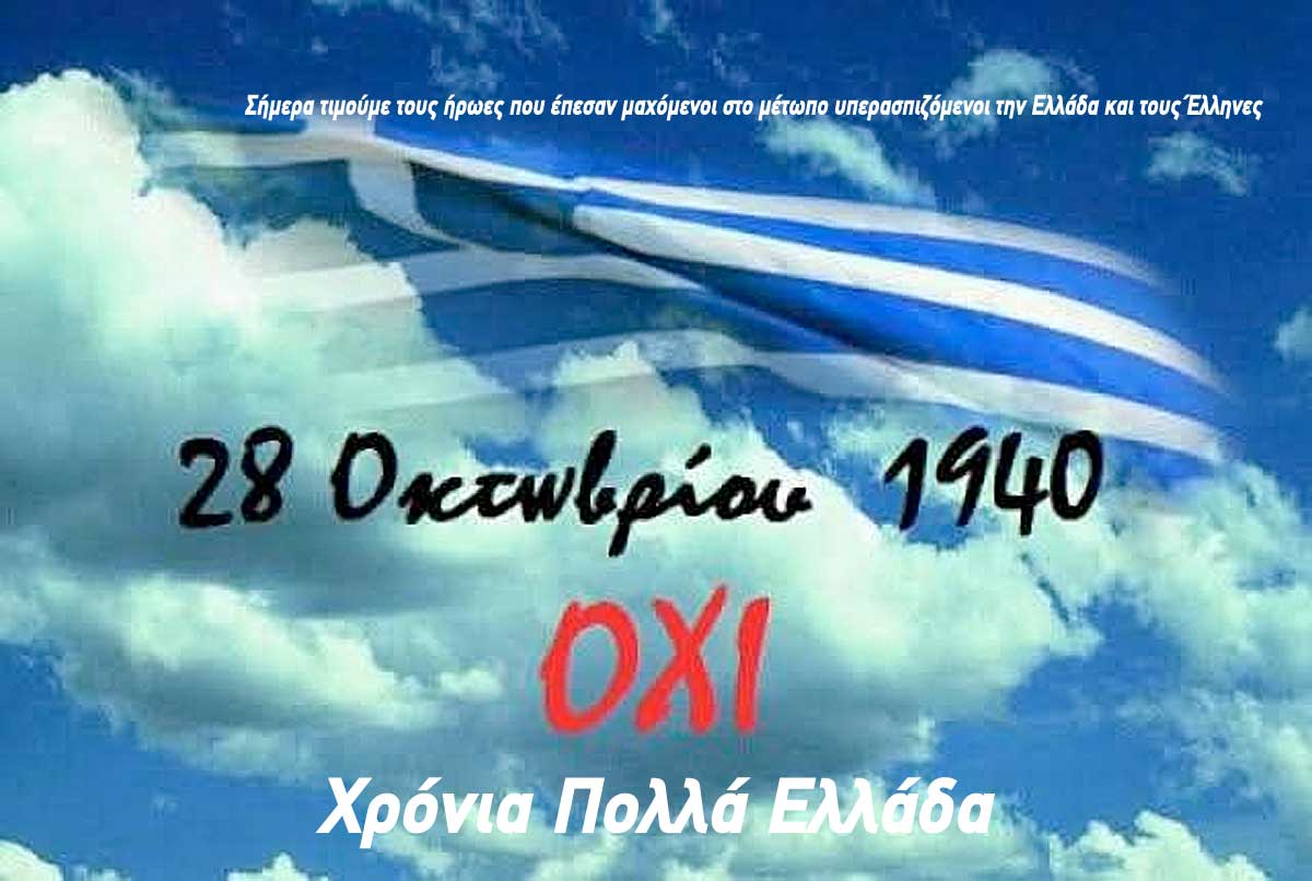 Χρόνια Πολλά Ελλάδα! Σήμερα τιμούμε του ήρωες που έπεσαν μαχόμενοι στο μέτωπο υπερασπιζόμενοι την Ελλάδα και τους Έλληνες