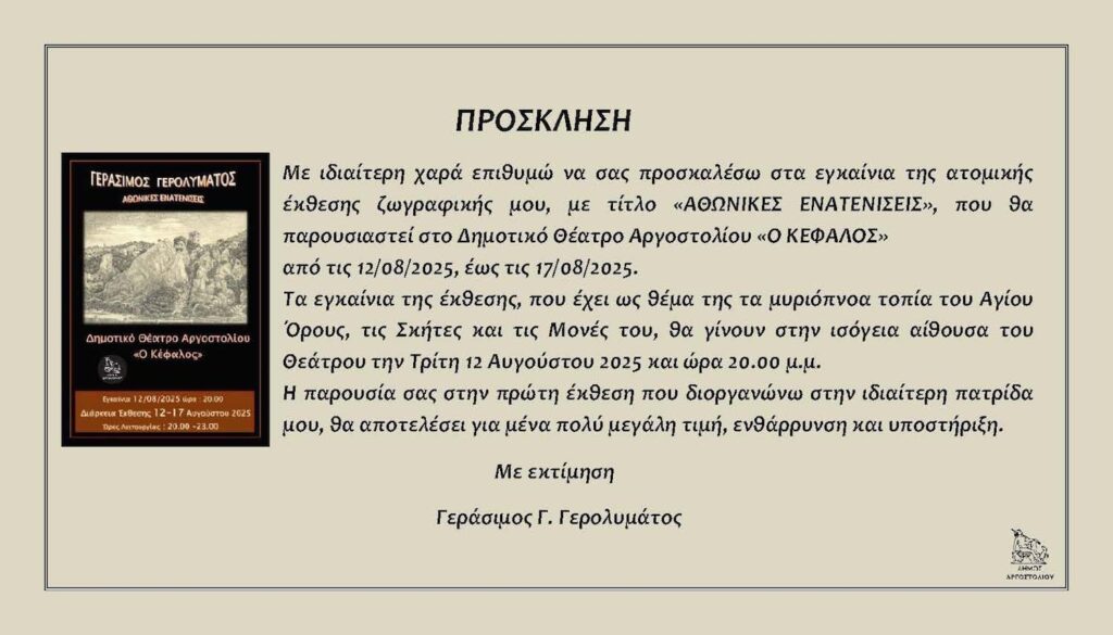 «ΑΘΩΝΙΚΕΣ ΕΝΑΤΕΝΙΣΕΙΣ». Έκθεση ζωγραφικής του Γεράσιμου Γερολυμάτου.