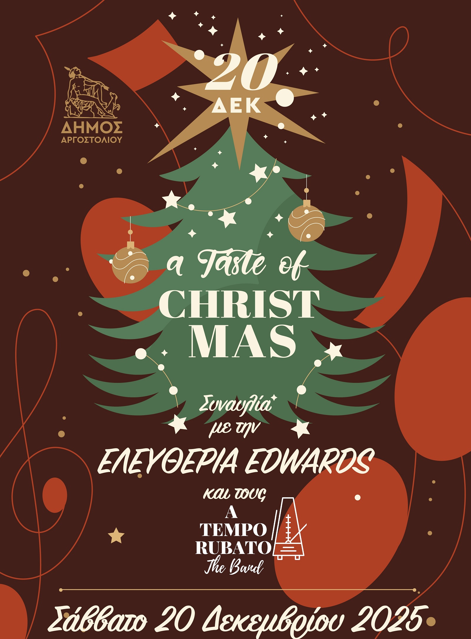Σας περιμένουμε να ζήσουμε μια μαγευτική μουσική βραδιά, γεμάτη μελωδίες και αγαπημένα χριστουγεννιάτικα τραγούδια, σε μια ατμόσφαιρα γιορτής και χαράς, ανταλλάσσοντας ευχές για όμορφες και χαρούμενες γιορτές.