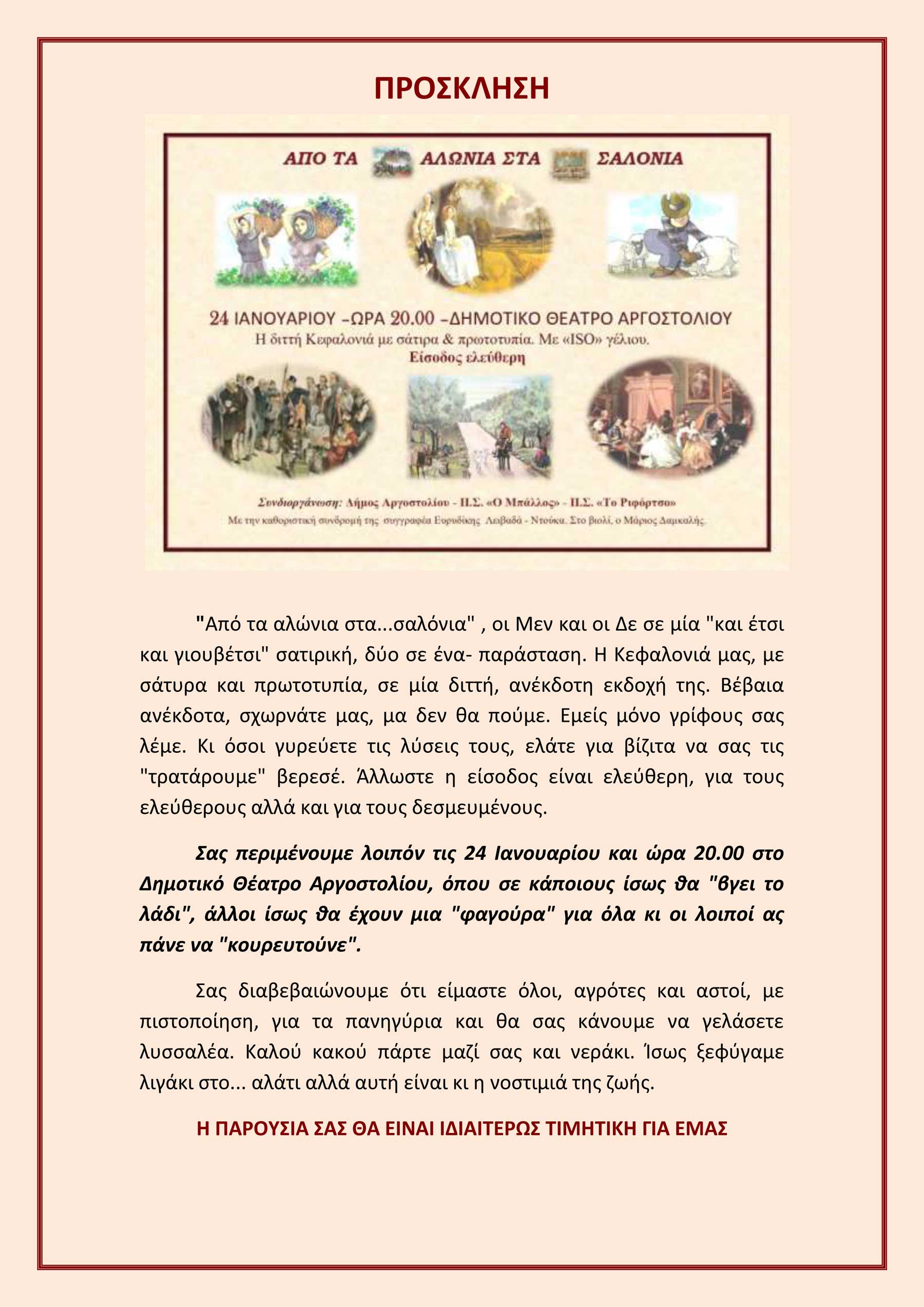 Την 24 Ιανουαρίου 2026 και ώρα 20:00 στο Δημοτικό Θέατρο Αργοστολίου