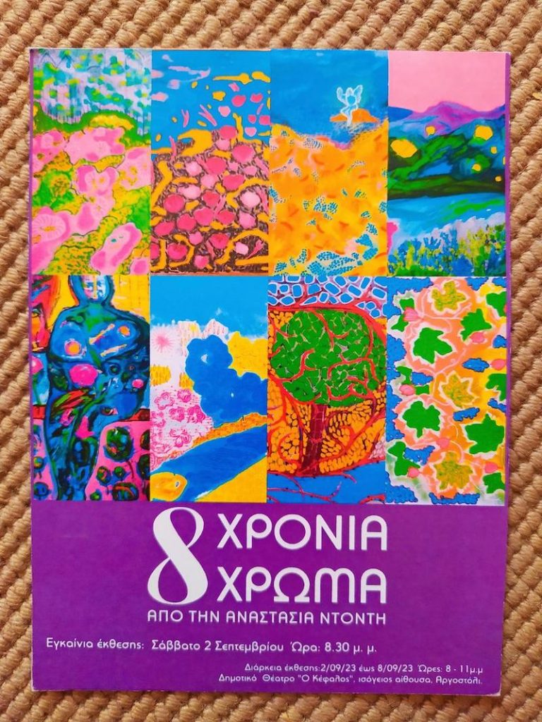 Αναδρομική έκθεση έργων μεικτής τεχνικής, ακρυλικά, χαρτί, κλωστές, χάντρες, της Αναστασίας Ντόντη. Η εικαστικός ζει στην Πάτρα κ στα Κλείσματα Λειβαθούς στην Κεφαλονιά. Εμπνέεται από την φύση, τα υλικά και το χρώμα κυριαρχεί στα έργα της. Η χαρά της ζωής, είναι το μήνυμά που προσπαθεί να επικοινωνήσει μέσω των δημιουργιών της.
