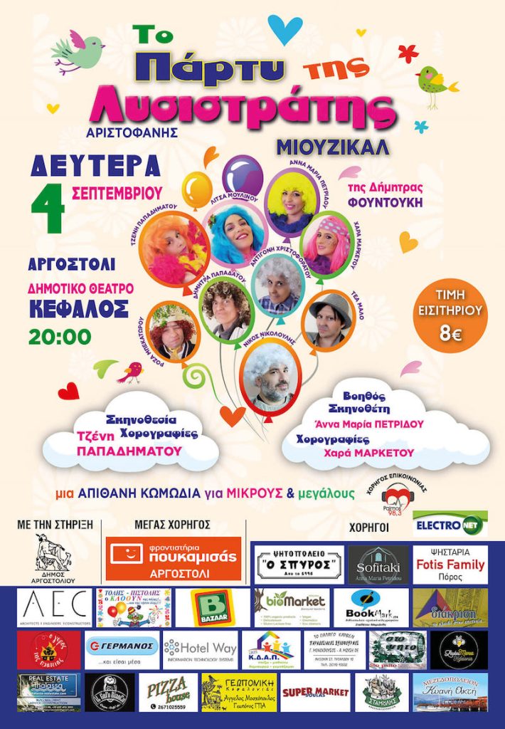 ΔΕΥΤΕΡΑ 4 ΣΕΠΤΕΜΒΡΙΟΥ ΑΡΓΟΣΤΟΛΙ, Δημοτικό Θέατρο «ΚΕΦΑΛΟΣ»ώρα: 20.00. Παιδικό Θέατρο «ΤΟ ΠΑΡΤΥ ΤΗΣ ΛΥΣΙΣΤΡΑΤΗΣ».