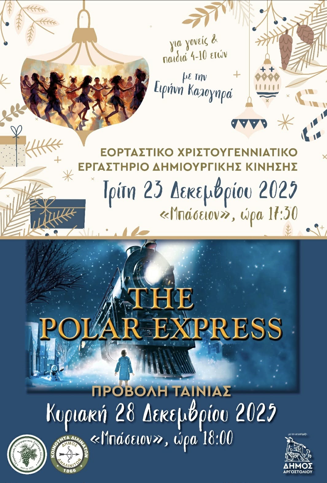 Ελάτε να ταξιδέψουμε μαζί στο πνεύμα των Χριστουγέννων με μια ταινία για μικρούς και μεγάλους! Συνδιοργάνωση: Δήμος Αργοστολίου, Τ.Κ.Διλινάτων, Εξωραϊστικός και Επιμορφωτικός Σύλλογος Διλινάτων.