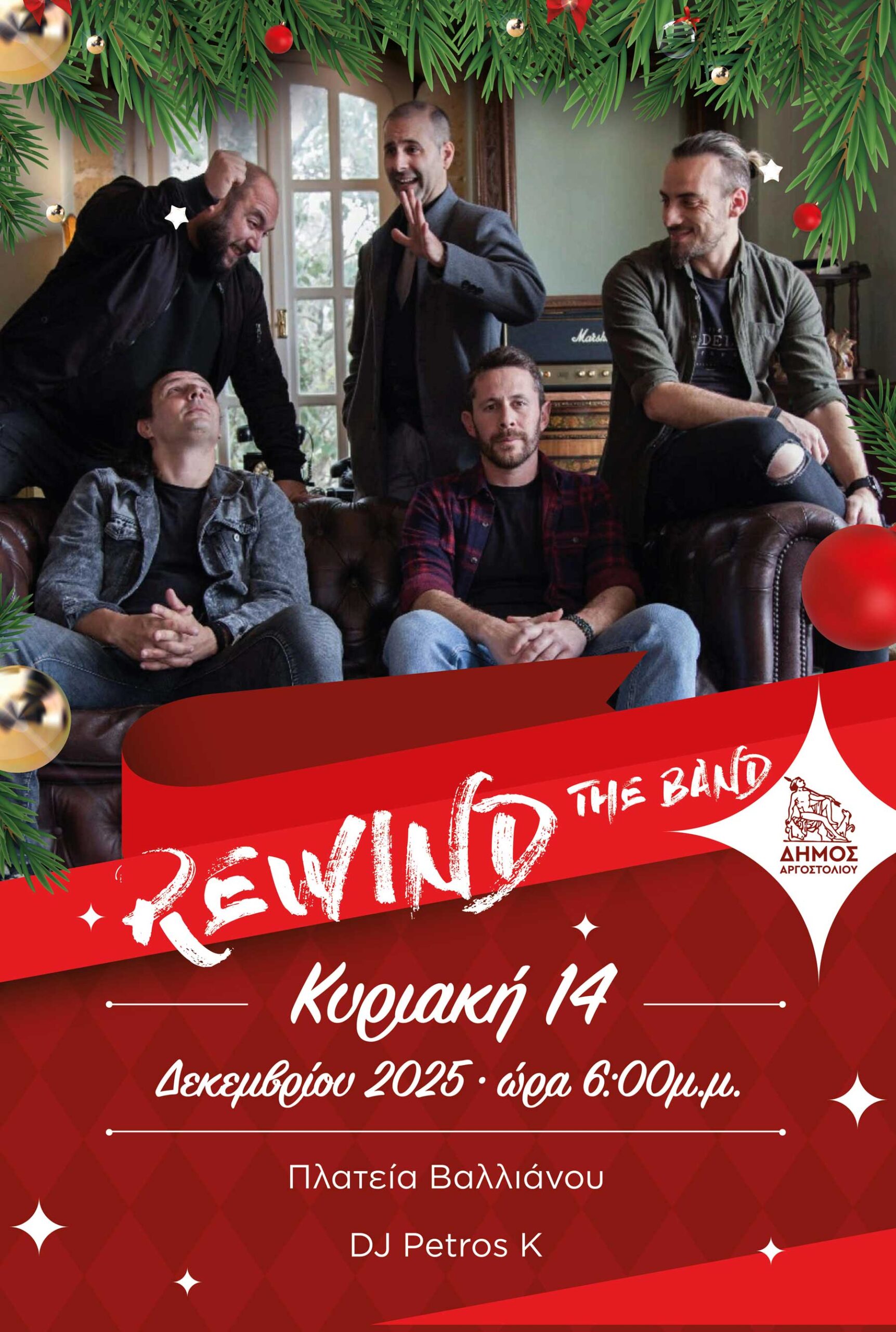 Ο Δήμος Αργοστολίου διοργανώνει εορταστική συναυλία με το μουσικό συγκρότημα REWIND The Band.