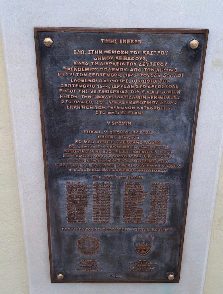 Νωρίτερα, στο Κάστρο Αγίου Γεωργίου στο μνημείο των πεσόντων Σλοβένων, κατατέθηκαν στεφάνια, από την Πρέσβη της Σλοβενίας και την Αντιδήμαρχο κα Κρυσταλλία Μιχαλάτου.