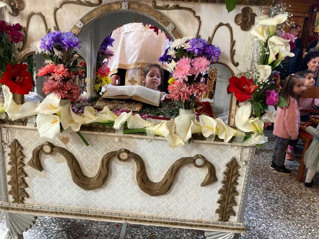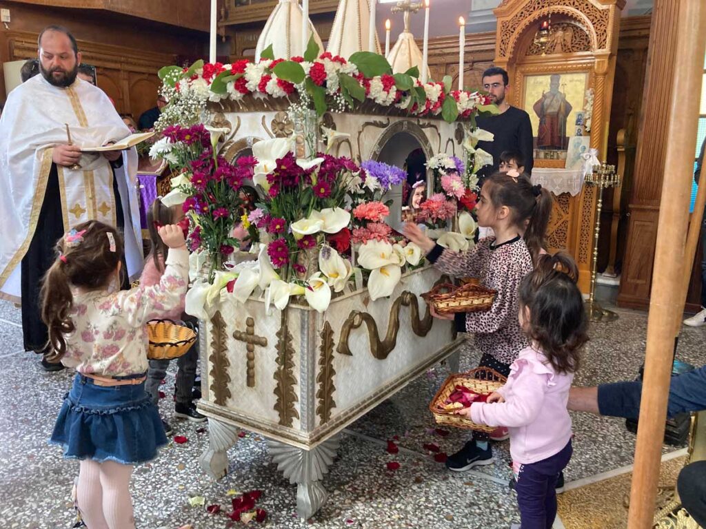 Τον Επιτάφιο στολισμένο με λουλούδια από τους κήπους του χωριού έραναν τα μικρά παιδιά με πέταλα από διάφορα άνθη.