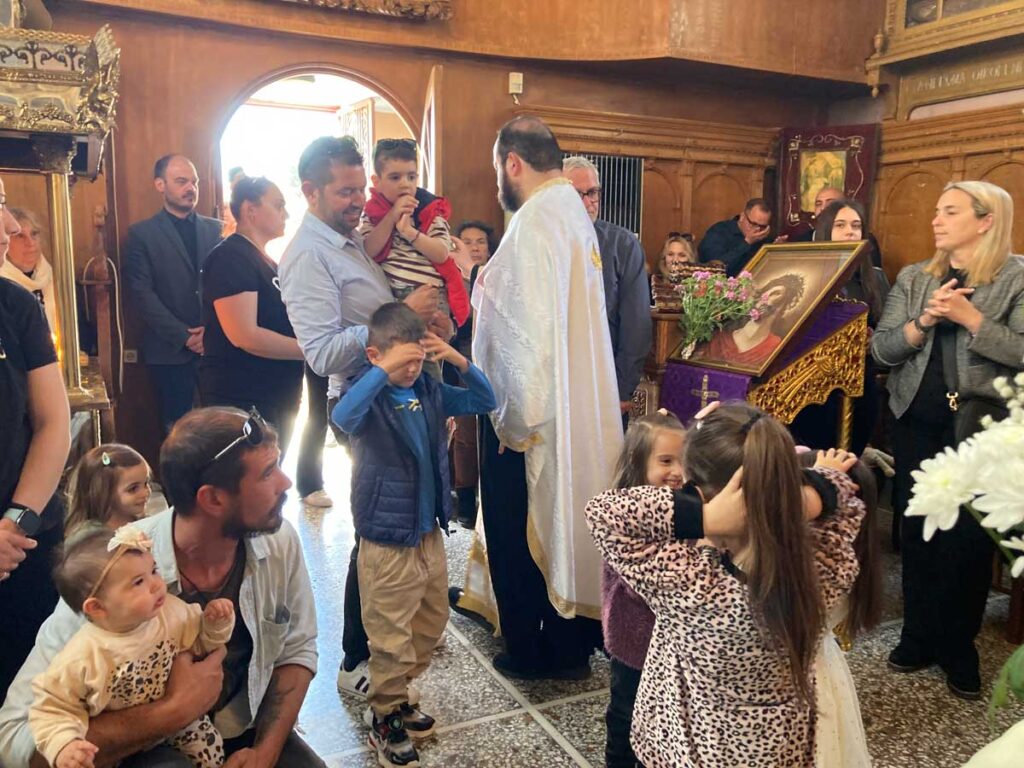 Η εκκλησία του χωριού Ευαγγελισμός της Θεοτόκου γέμισε ασφυκτικά με τους πιστούς, που μεταξύ άλλων άκουσαν τους ωραιότερους ουράνιους ύμνους που ψάλονται αυτή την μέρα του πένθους από τον Αιδεσιμολογιώτατο π. Κωνσταντίνο Τζουβέκα και τους ψάλτες.