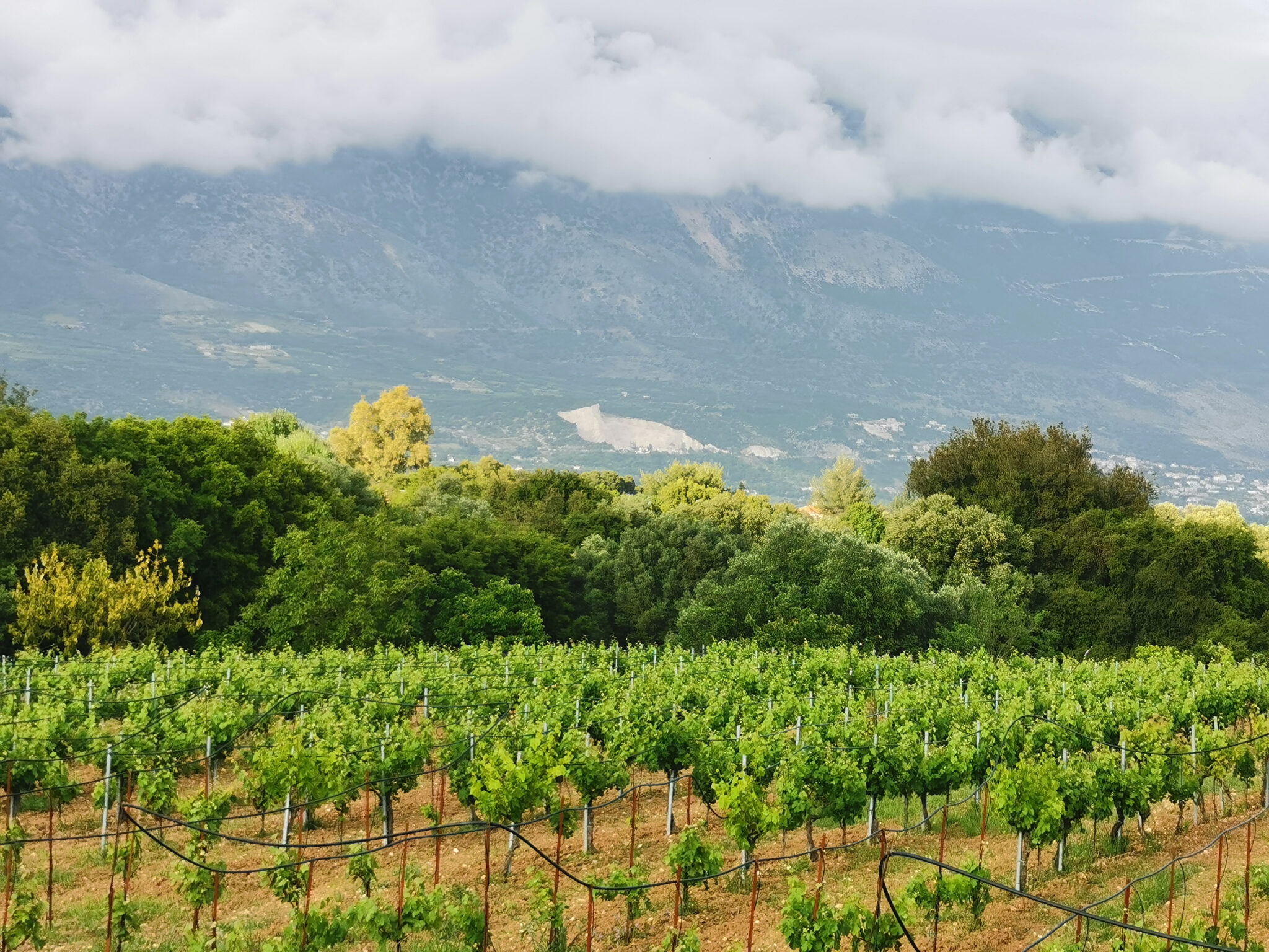 Πλησιάζοντας την Κεφαλονιά, από μακριά δεσπόζει το βουνό του Αίνου, που καθορίζει το κλίμα του νησιού, είναι αποταμιευτής νερού και, με την ασβεστολιθική του σύσταση, καθορίζει το εδαφολογικό υπόβαθρό του. Εκεί υπάρχουν αυτόριζοι, αιωνόβιοι αμπελώνες σε όλη την έκτασή του, που δίνουν καρπό με ιδιαίτερο χαρακτήρα και συμπύκνωση. Έχει πλούτο ντόπιων σταφυλιών, όπως η Μοσχατέλα, το Βοστιλίδι με τα διαφορετικά ονόματα, το Τσαούσι, το Ζακυνθινό, η Ρομπόλα και η Μαυροδάφνη. Υπάρχουν 11 οινοποιεία, τα περισσότερα επισκέψιμα, και τρεις ονομασίες προέλευσης, με τις αντίστοιχες ζώνες τους: Ρομπόλα, Μοσχάτο και Μαυροδάφνη.