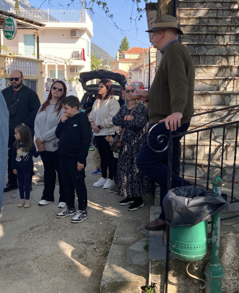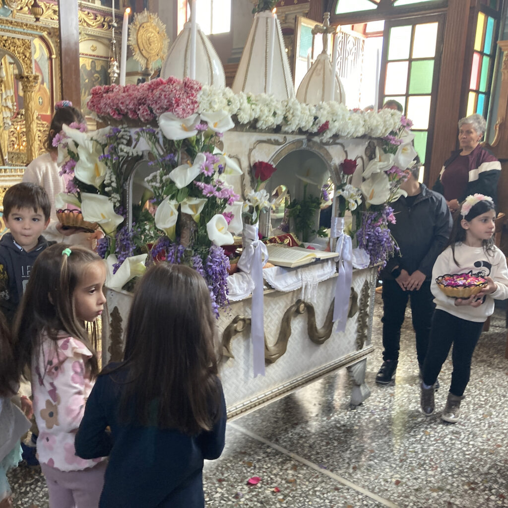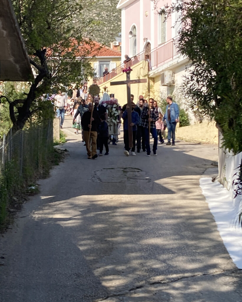 Αφού έγινε η τελετή της Αποκαθήλωσης του σώματος του Ιησού από τον Σταυρό, στη συνέχεια η περιφορά του Επιταφίου με πρώτη στάση στην βρύση με τον εμβληματικό πλάτανο να δεσπόζει στην περιοχή, και το λαγκάδι σε πρωταγωνιστικό ρόλο, με την εκρηκτική του βλάστηση να μας θυμίζει ότι η άνοιξη και Ανάσταση του Κυρίου είναι αύριο.