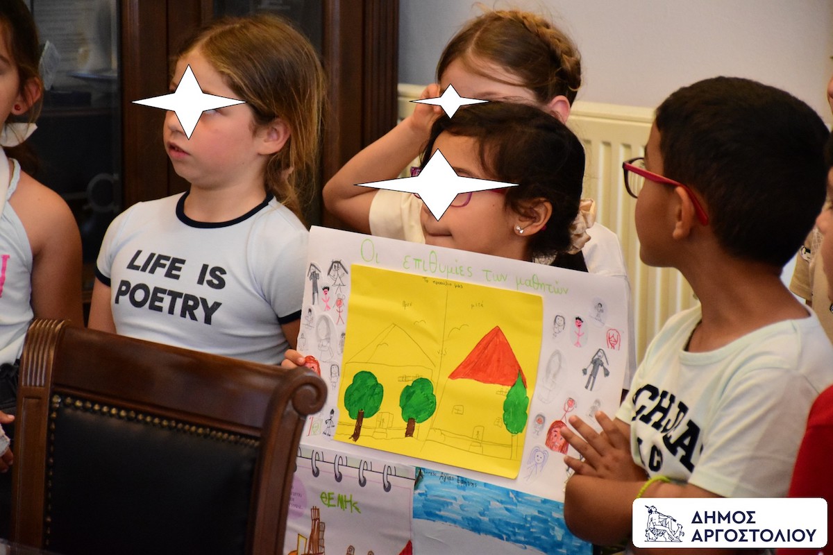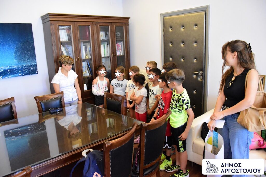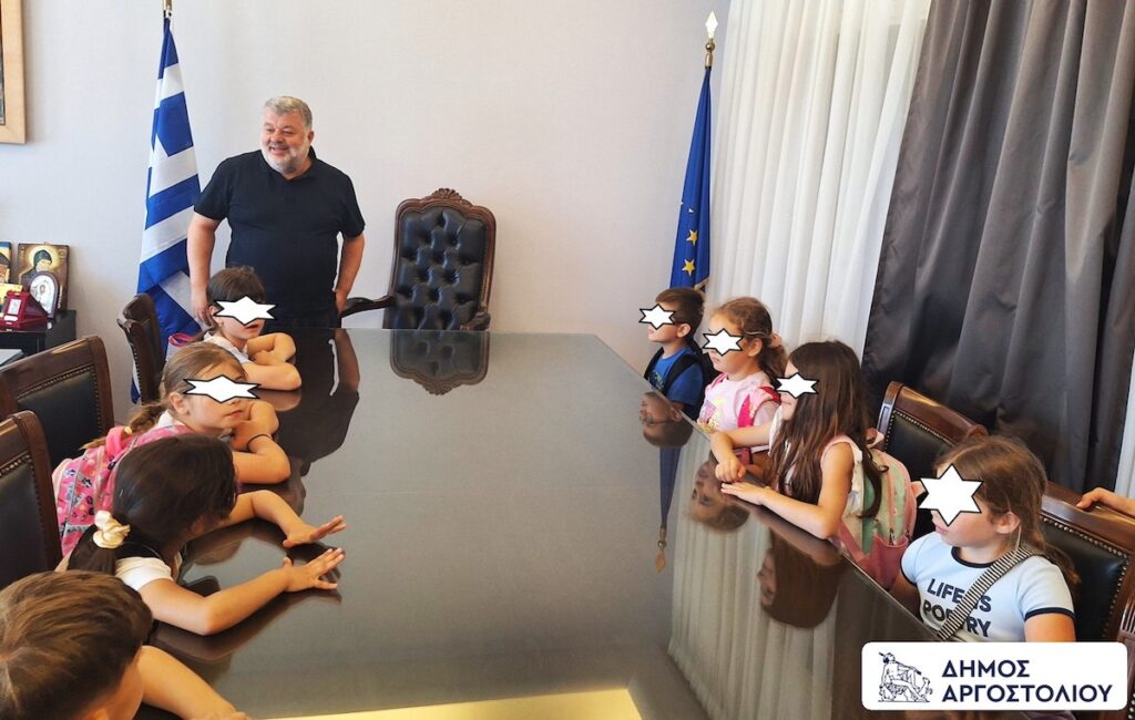 Είχε προηγηθεί ξενάγηση από συνεργάτες του Δημάρχου εντός του Δημαρχείου Αργοστολίου, όπου τα παιδιά ενημερώθηκαν για την ιστορία του κτιρίου, τον ρόλο που επιτελεί, τις υπηρεσίες που στεγάζει, αλλά και για το περιεχόμενο του εμβλήματος, τον Κέφαλο, καθώς και τον μύθο με τον οποίο η Κεφαλονιά απέκτησε το όνομά της από τον γενάρχη της.