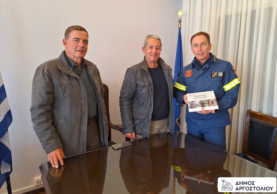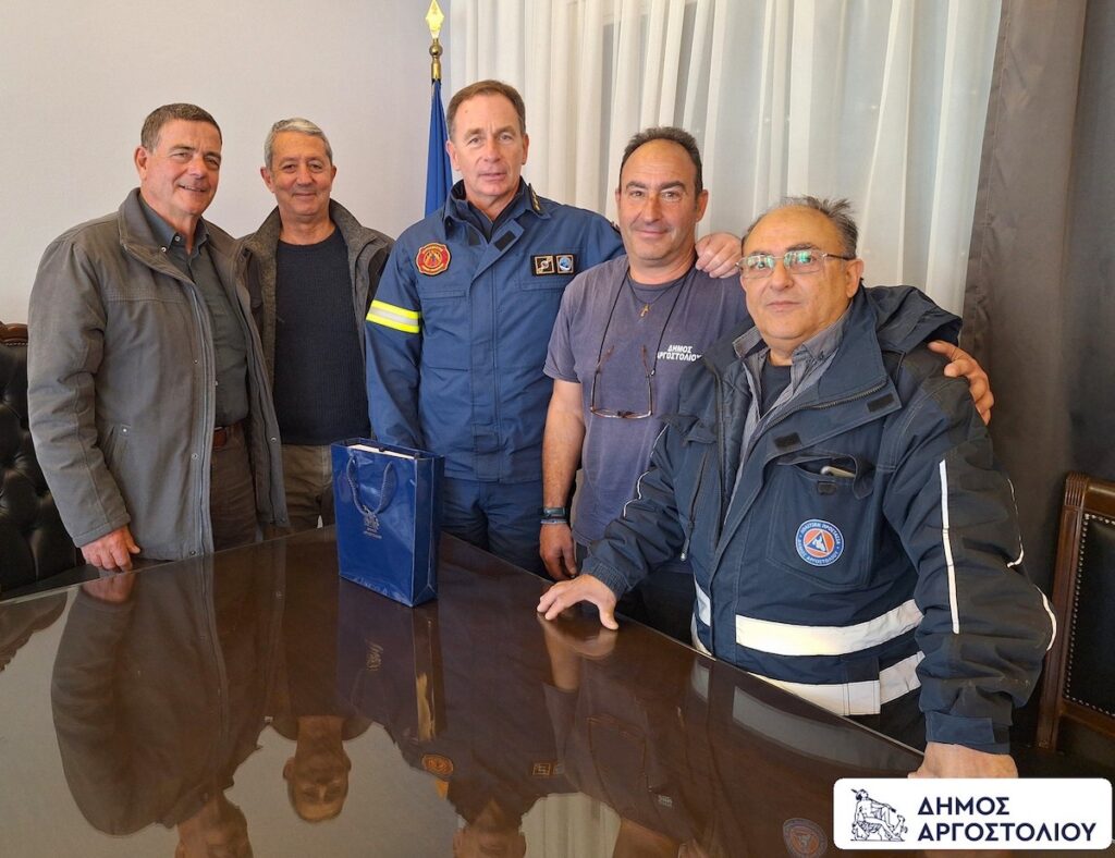 Στην αποχαιρετιστήρια συνάντηση συμμετείχαν και μέλη της Ομάδας Πολιτικής Προστασίας του Δήμου Αργοστολίου, για την οποία ο απερχόμενος Διοικητής μίλησε με τα καλύτερα λόγια για την άψογη συνεργασία και την άοκνη προσπάθεια που κατέβαλαν.