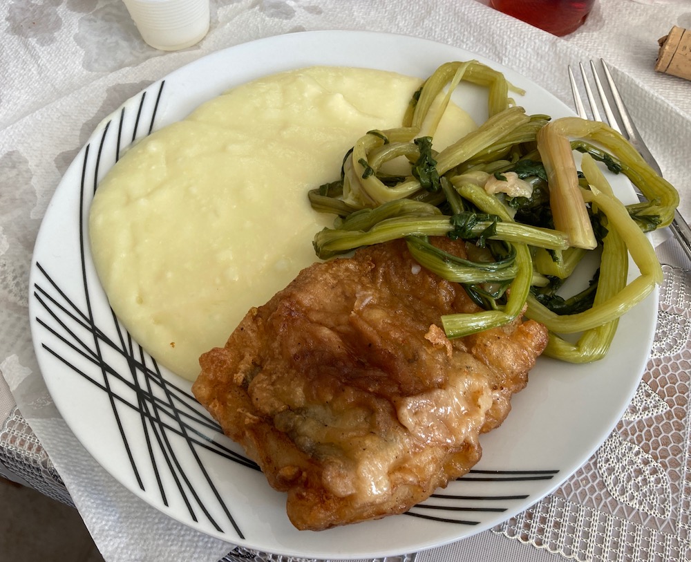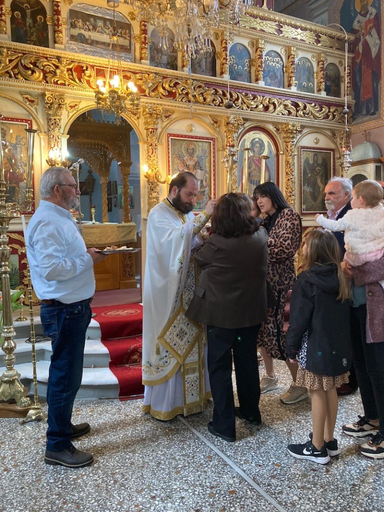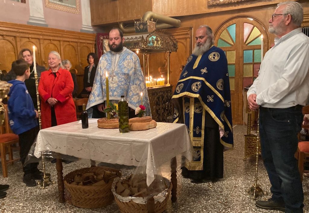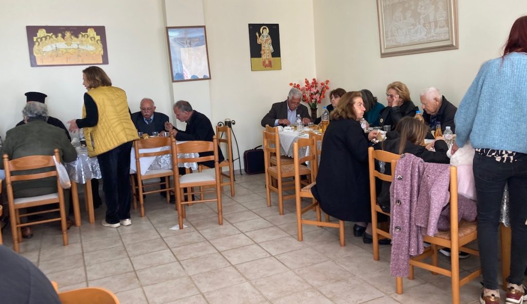 Η συνέχεια στο κελί της εκκλησίας με την παραδοσιακή “αλιάδα” – μπακαλιάρο, σκορδαλιά και χόρτα, πίτες και άλλα εδέσματα με κρασί και αναψυκτικά. Πολλά από τα εδέσματα προσφέρθηκαν από τις νοικοκυρές του χωριού, ενώ το κυρίως γεύμα του μπακαλιάρου από την εκκλησία. Πρέπει να αναφερθεί και η προσφορά του Αντώνη Καμηλάτου σε κρασί για το οποίο δήλωνε υπερήφανος παρά τις μερικές κριτικές από κακοπροαίρετους…