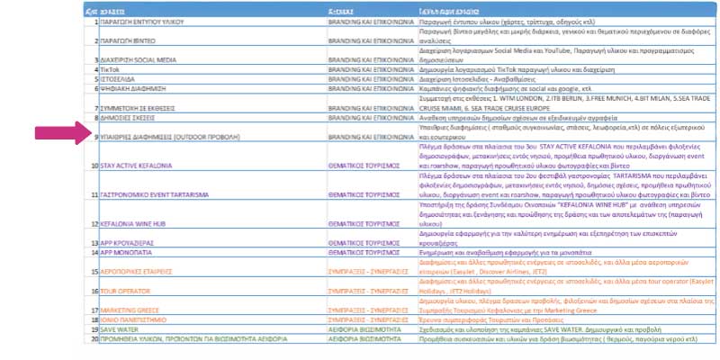 | 2 | Προβολή μέσω τραμ “full wrap”. | Προβολή της Κεφαλονιάς και της επίσημης τουριστικής ιστοσελίδας της για 28 ημέρες με τραμ “full wrap που θα κινείται στο Μιλάνο | 1 | 8.000,00 |