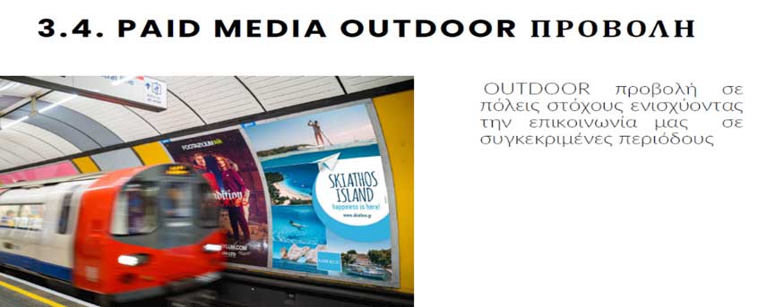 3. Οι συνομιλίες και η συνεργασία για την συγκεκριμένη δράση έχουν πραγματοποιηθεί με την Paramount Α.Ε., εταιρεία με εμπειρία 36 ετών στην ελληνική αγορά και εξειδίκευση στη σχεδίαση και υλοποίηση στρατηγικών καμπανιών τουριστικής προβολής, που αποτελεί τη μοναδική ελληνική εταιρεία με ενεργό δίκτυο συνεργατών σε 16 χώρες, προσφέροντας λύσεις εξωτερικής διαφήμισης σε στρατηγικά σημεία μέσω συνεργασιών με κορυφαίες εταιρείες όπως η JC Decaux, η Clear Channel, και η Global Media. Ανάμεσα στους πελάτες τους συγκαταλέγονται η Περιφέρεια Νοτίου Αιγαίου, η Περιφέρεια Ιονίων Νήσων, οι Δήμοι Σκιάθου, Κω και Θεσσαλονίκης.