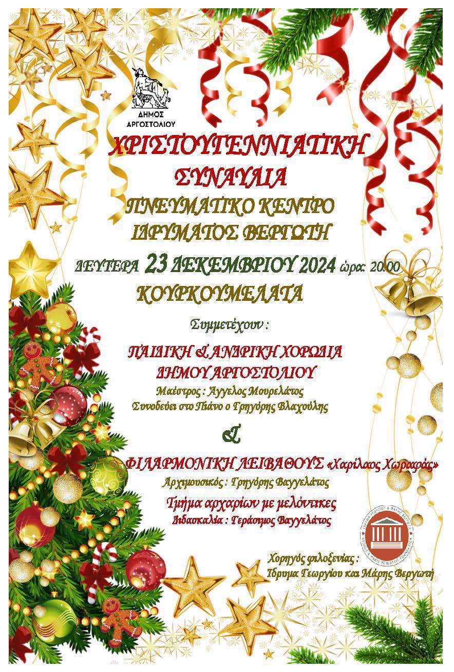 Τη Δευτέρα 23 Δεκεμβρίου 2024 και ώρα 20:00 στο πνευματικό κέντρο Ιδρύματος Βεργωτή Κοινοποιήστε: Share on Facebook(Ανοίγει σε νέο παράθυρο) Facebook Share on X(Ανοίγει σε νέο παράθυρο) X Μου αρέσει αυτό:Like Φόρτωση... Πλοήγηση άρθρων Την αναδρομική έκθεση «Πατρίδα» της Έφης Σπηλιώτη επισκέφτηκε ο Θεόφιλος Μιχαλάτος Χριστουγεννιάτικη Συναυλία