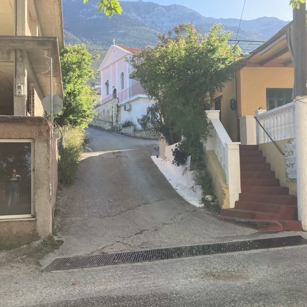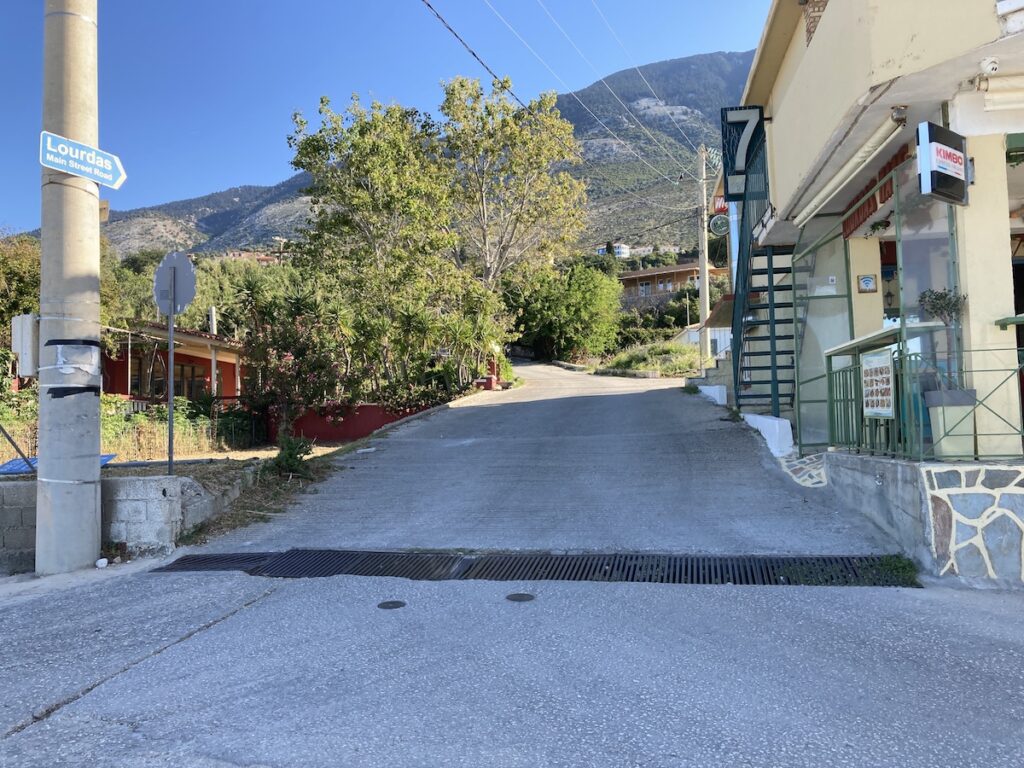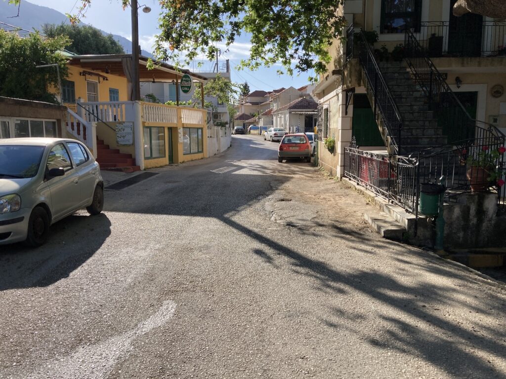 Οι δρόμοι στο χωριό είναι συγκεκριμένοι. Ένας κεντρικός δρόμος που κατεβαίνει από τα Βλαχάτα προς την παραλία – ο οποίος είναι χαρακτηρισμένος αγροτικός (sic) – με αυτόν της παραλίας να έχει μόνη διαφυγή στο αριστερό άκρο της με έναν που οδηγεί και πάλι τον κεντρικό δρόμο, αλλά και προς το Μελαγκάδι – κεντρική δρόμος Αργοστολίου – Πόρου που έχει διακοπεί εδώ και χρόνια. Στην πλατεία της Βρύσης (που λέει ο λόγος πλατεία) υπάρχει ένα δρομάκι της εκκλησίας, στενό που οδηγεί (ίσα – ίσα χωράει ένα αυτοκινητο και γλυστράει πολύ) στον ενετικό και από εκεί αν έχεις τύχη και δεν συναντήσεις άλλο αυτοκίνητο στην κεντρική αρτηρία Αργοστολίου – Πόρου.