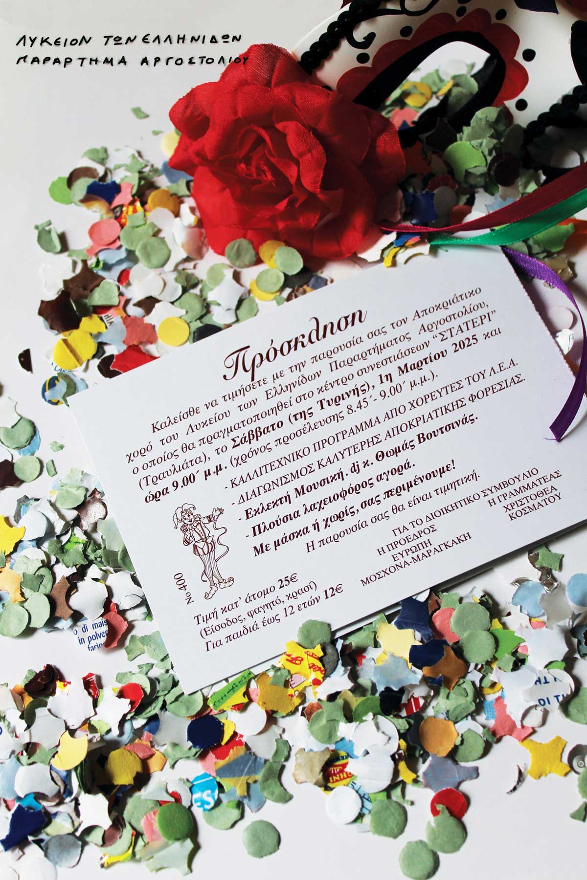 Στα πλαίσια του Αποκριάτικου χορού του Λυκείου των Ελληνίδων Αργοστολίου, που θα γίνει στο «Στατέρι» την 1η Μαρτίου 2025, όπως ήδη έχει γνωστοποιηθεί, θα πραγματοποιηθεί διαγωνισμός για την καλύτερη αποκριάτικη φορεσιά.